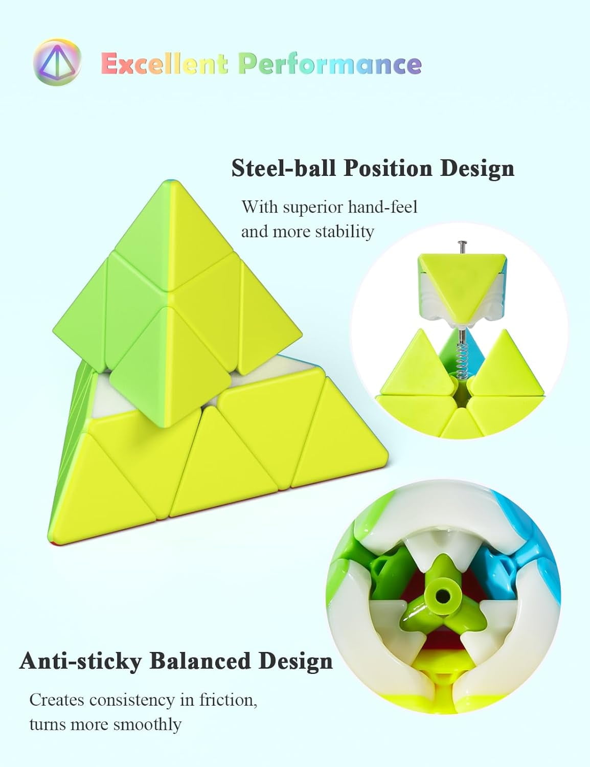 - ✦ For All Ages – Roxenda Speed Cube Set (2×2 3×3 Pyramid Cube) is the classic color matching puzzle. Twist and turn the sides of the Speed Cube so that each of the six surfaces has only one color. Good choice for beginners and professionals. Each Speed Cube Set contains an English user manual.